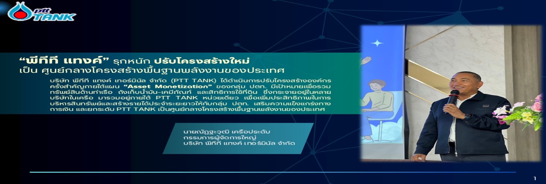 บริษัท พีทีที แทงค์ เทอร์มินัล จำกัด ใช้คุกกี้ที่มีความจำเป็นอย่างยิ่งต่อการทำงานของเว็บไซต์ของ บริษัท พีทีที แทงค์ เทอร์มินัล จำกัด และประสงค์จะใช้คุกกี้ทางเลือกเพื่อช่วยให้สามารถปรับปรุงเว็บไซต์ของ บริษัท พีทีที แทงค์ เทอร์มินัล จำกัด ทั้งนี้ บริษัท พีทีที แทงค์ เทอร์มินัล จำกัด จะไม่ใช้คุกกี้ทางเลือกจนกว่าท่านจะอนุญาตให้ บริษัท พีทีที แทงค์ เทอร์มินัล จำกัด เปิดใช้งานคุกกี้ดังกล่าว ท่านสามารถศึกษารายละเอียดของการใช้คุกกี้ได้จากนโยบายการใช้คุกกี้ ของ บริษัท พีทีที แทงค์ เทอร์มินัล จำกัด ทั้งนี้ หากท่านกดยอมรับคุกกี้ทั้งหมดจะหมายความว่าท่านยินยอมให้ บริษัท พีทีที แทงค์ เทอร์มินัล จำกัด บันทึกและใช้คุกกี้ทั้งหมดจากอุปกรณ์ที่ท่านใช้ในการเข้าเว็บไซต์ของ บริษัท พีทีที แทงค์ เทอร์มินัล จำกัด เพื่อทำให้การเลื่อนสำรวจหน้าเว็บ และการวิเคราะห์การใช้เว็บไซต์มีประสิทธิภาพยิ่งขึ้น รวมถึงเพื่อสนับสนุนการทำกิจกรรมทางการตลาดของ บริษัท พีทีที แทงค์ เทอร์มินัล จำกัด